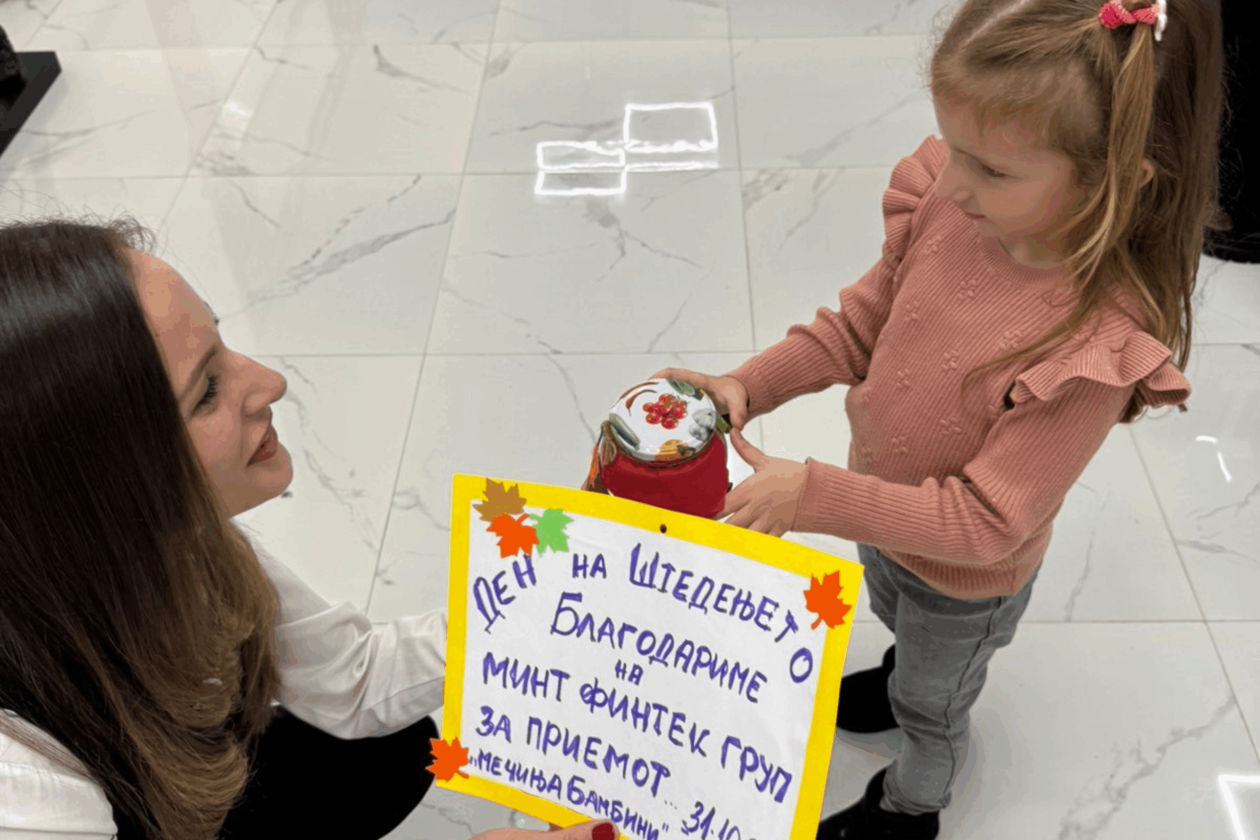 Во духот на едукацијата и добрите финансиски навики, децата имаа можност да се запознаат со симболиката на штедењето и да научат како преку мали чекори може да се создадат големи навики. Со нивните насмевки и прашања за тоа „како растат парите“, денот доби најубава смисла.Секое дете доби специјално дизајнирана Mint касичка – со мотиви од вселената и природата – симбол на љубопитност, раст и одговорност. Покрај тоа, децата изработија и цртежи на тема „штедење“ кои останаа изложени во канцелариите на компанијата како потсетник дека најубавите инвестиции се оние во иднината.